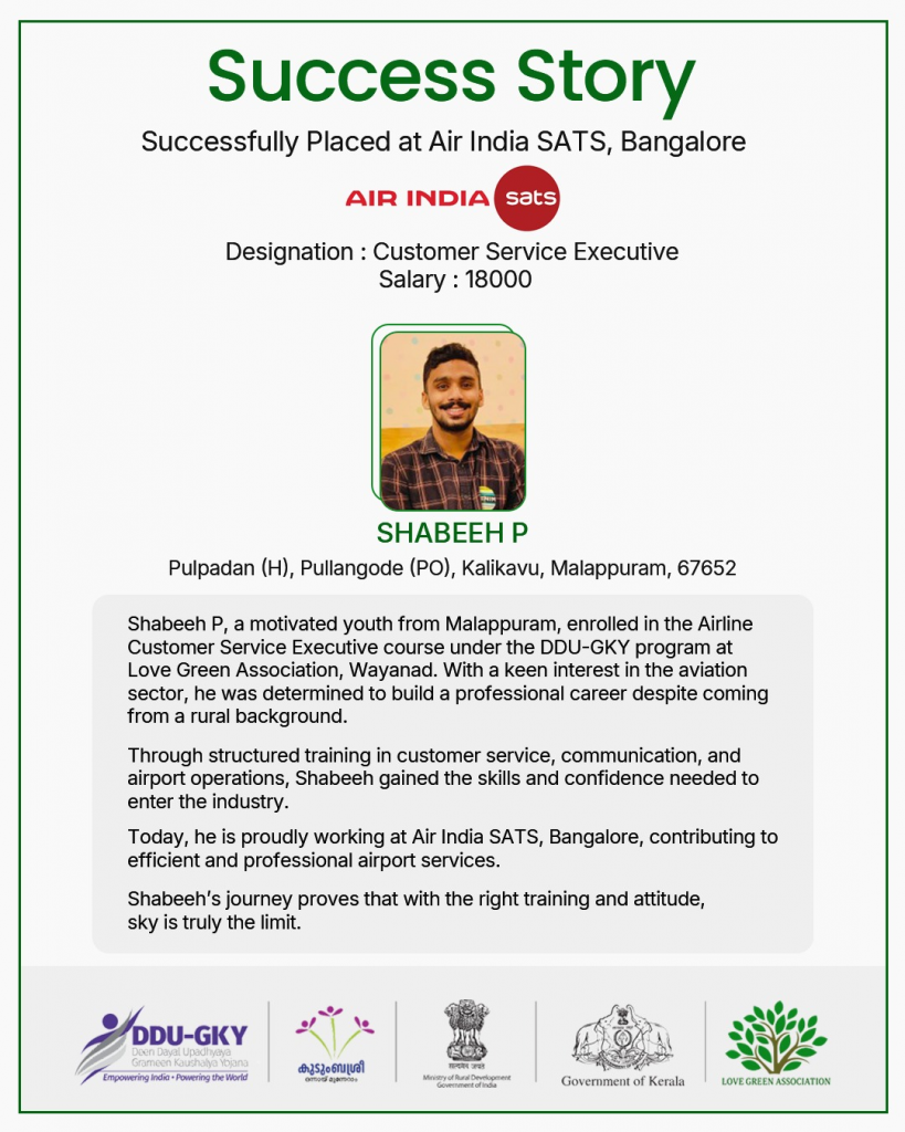 | Raja Naseeb Khan hails from District Rajouri and comes from a modest family background. Determined to support his family financially, he sought opportunities to build his skills and career. Through a mobilizer, he came to know about the HIMAYAT (DDU-GKY) program and decided to enroll. He received training in Computer Applications, English Communication, Soft Skills, and Office Assistance, which laid the foundation for his professional growth. |