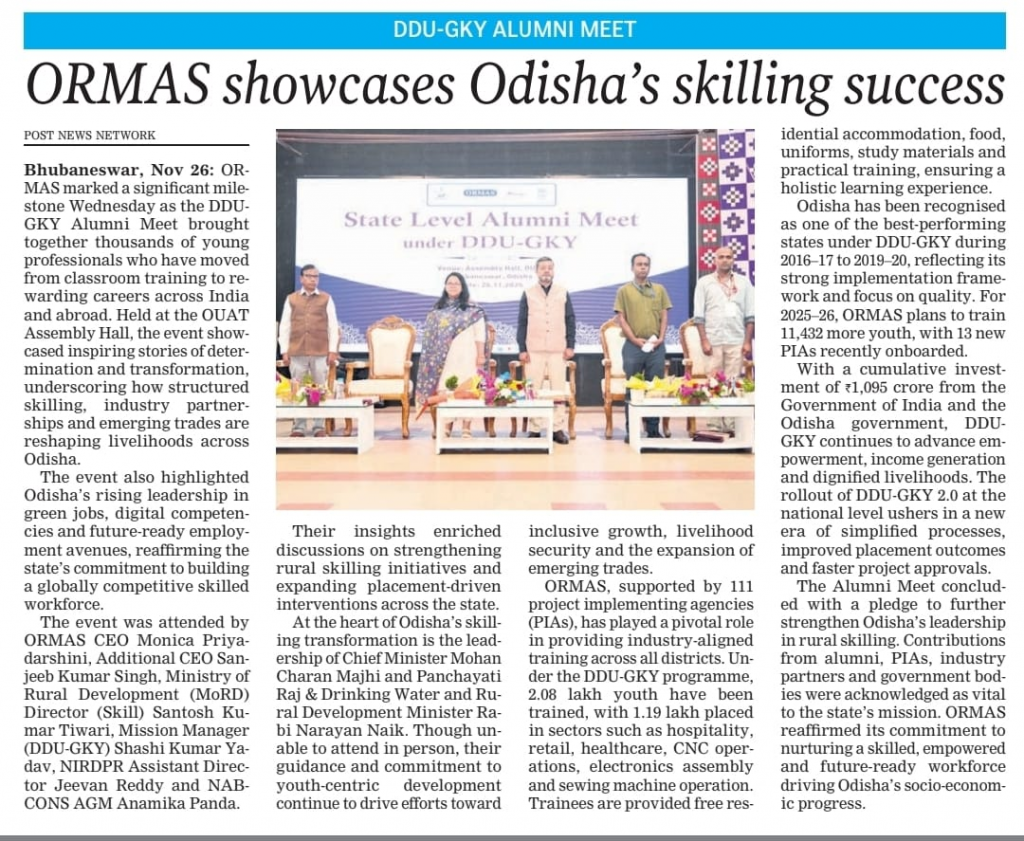 More than 300 students participated in the programme, accompanied by their parents. The dignitaries interacted with the alumni and current trainees, motivating them with insights into emerging opportunities in the skill and employment landscape. Parents expressed their appreciation for ORMAS and DDU-GKY for enabling their children to secure stable livelihoods.