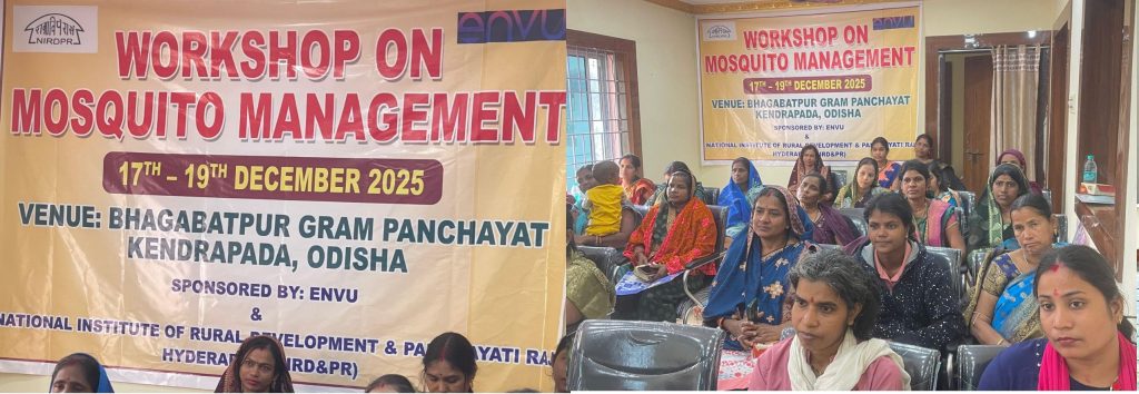 A three-day training on ‘Mosquito Management Skill Training for SHG Members of the Bhagabatpur Gram Panchayat, Kendrapara, Odisha was held on 17-19 December 2025. The Sarpanch of Bhagabatpur Gram Panchayat, Smt Priyanka Nayak organized the three day training at Bahagabatpur. Sri Ajambar Mohanty, Odisha Administrative Service, Chief District Officer cum Executive Director graced the inaugural session of the training. Mrs Nirmala Mohanty, Member Zilla Parishad and Ms. Lilita Das, President Zilla Parishad were present.