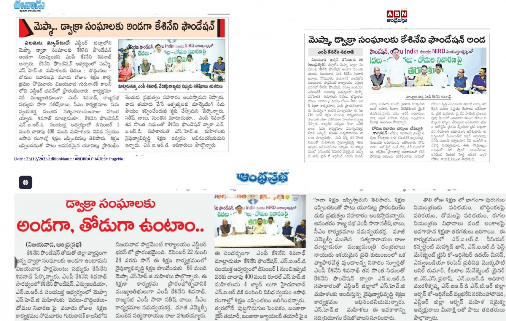 Under the banner of collaboration between NIRDPR and KESINENI Foundation, subject matter experts of the Pest Management Industry and Envu conducted a three day training on Pest Management in Vijayawada on 22nd – 24th Dec’25 for SHGs and Youth of NTR District. The training was conducted under the initiative of Hon’ble MP Sri Kesineni Sivanath, Member of Parliament through the Kesineni Foundarion. Along with Sri Kesineni Sivanath, the Rajya Sabha Hon’ble MP Sri Sada Satish Babu and Sri Mantena Satyanarayana Raju, Former MLC addressed the participants as Chief Guests. Several skill training programmes in collaboration with NIRDPR have been planned to support the youth and women of the constituency. The training was conducted by NIRDPR-Envu Resource Persons Sri Uday Menon, Sri Anil Makkapati and Sri G S S Prakash.