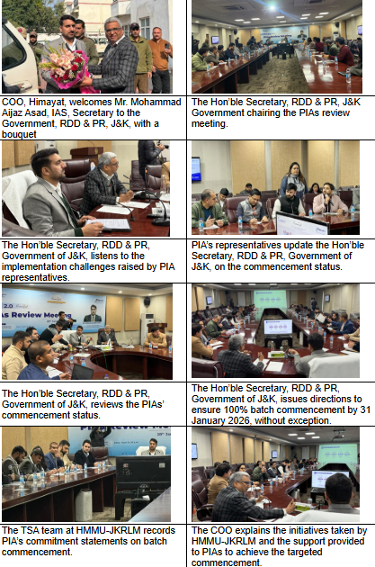 The Secretary, Rural Development Department (RDD) and Panchayati Raj, Mohammad Aijaz Asad, IAS, reviewed the performance of Project Implementation Agencies (PIAs) under the Himayat 2.0 programme and emphasized expediting skill training and employment opportunities for the youth.
