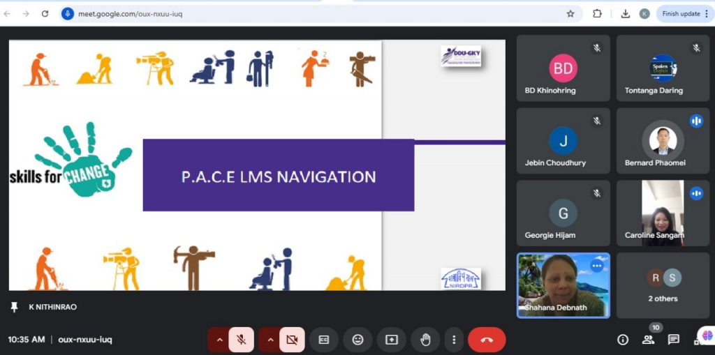 As per the PACE initiative as per the request of Manipur SRLM, an online Orientation for the PIA Trainers from the state was held on 18th Feb’25. The purpose of this training was to orient and guide the trainers on the process flow and evaluation process in the LMS portal for PACE certification. The online session was facilitated by Shri Nithin Kadam, Assistant Director E-learning. In this program, 10 trainers nominated by the SRLM participated.